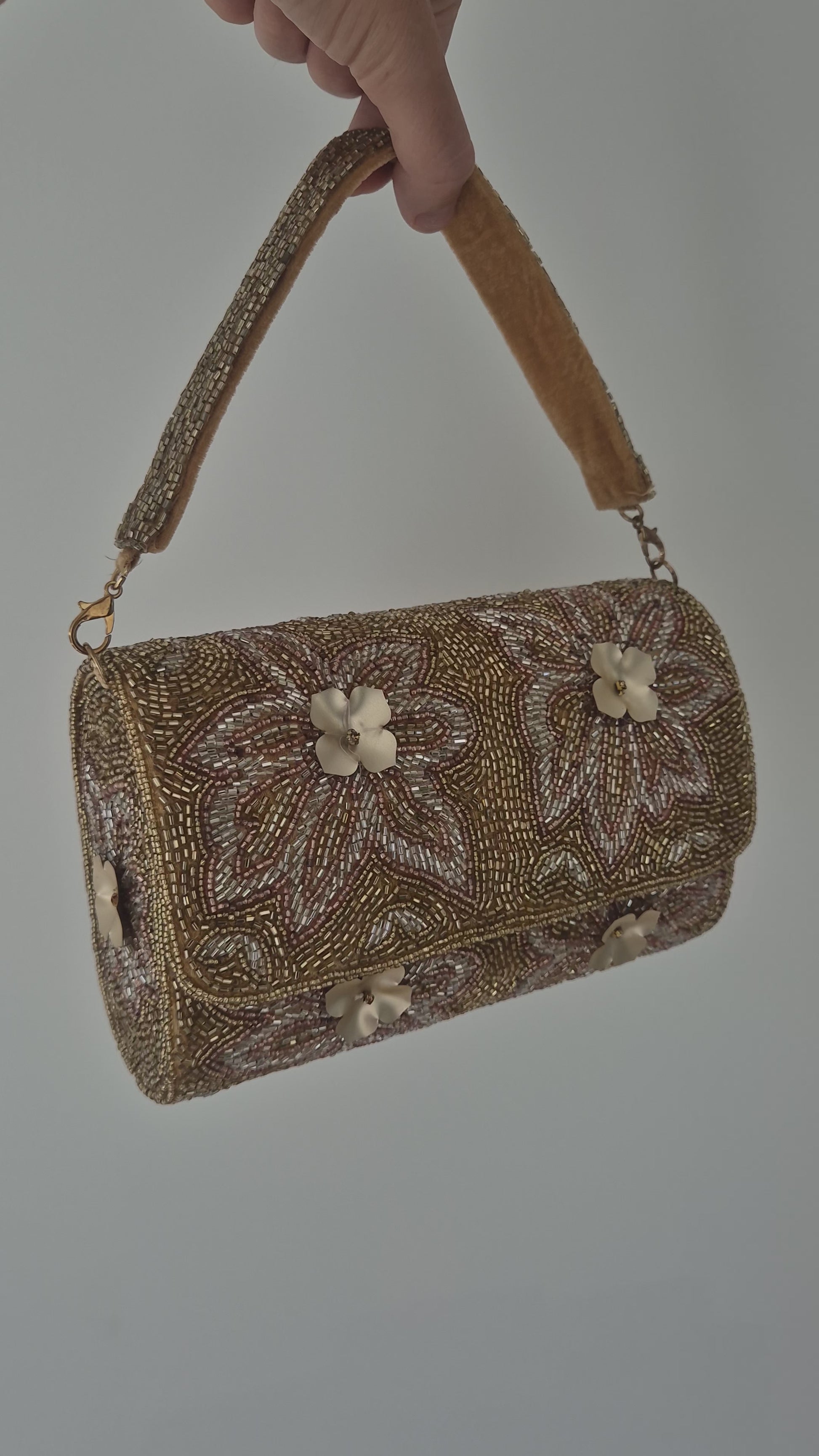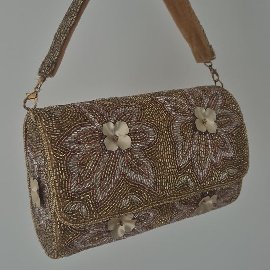 Handbag Flower Embellished Beaded Bag Gold
