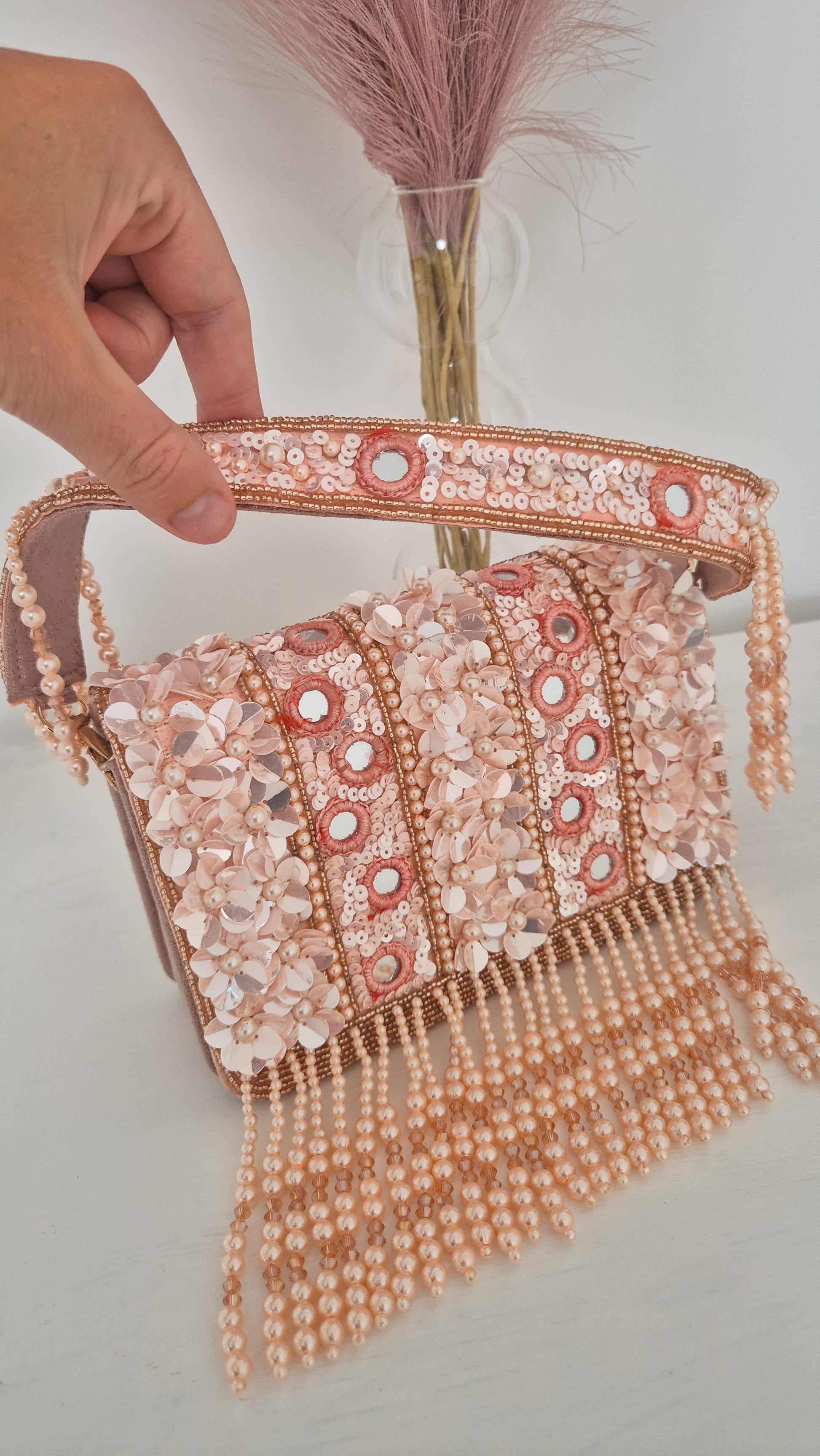 Handbag Pink Pearl Flower Sequin Beaded Bag