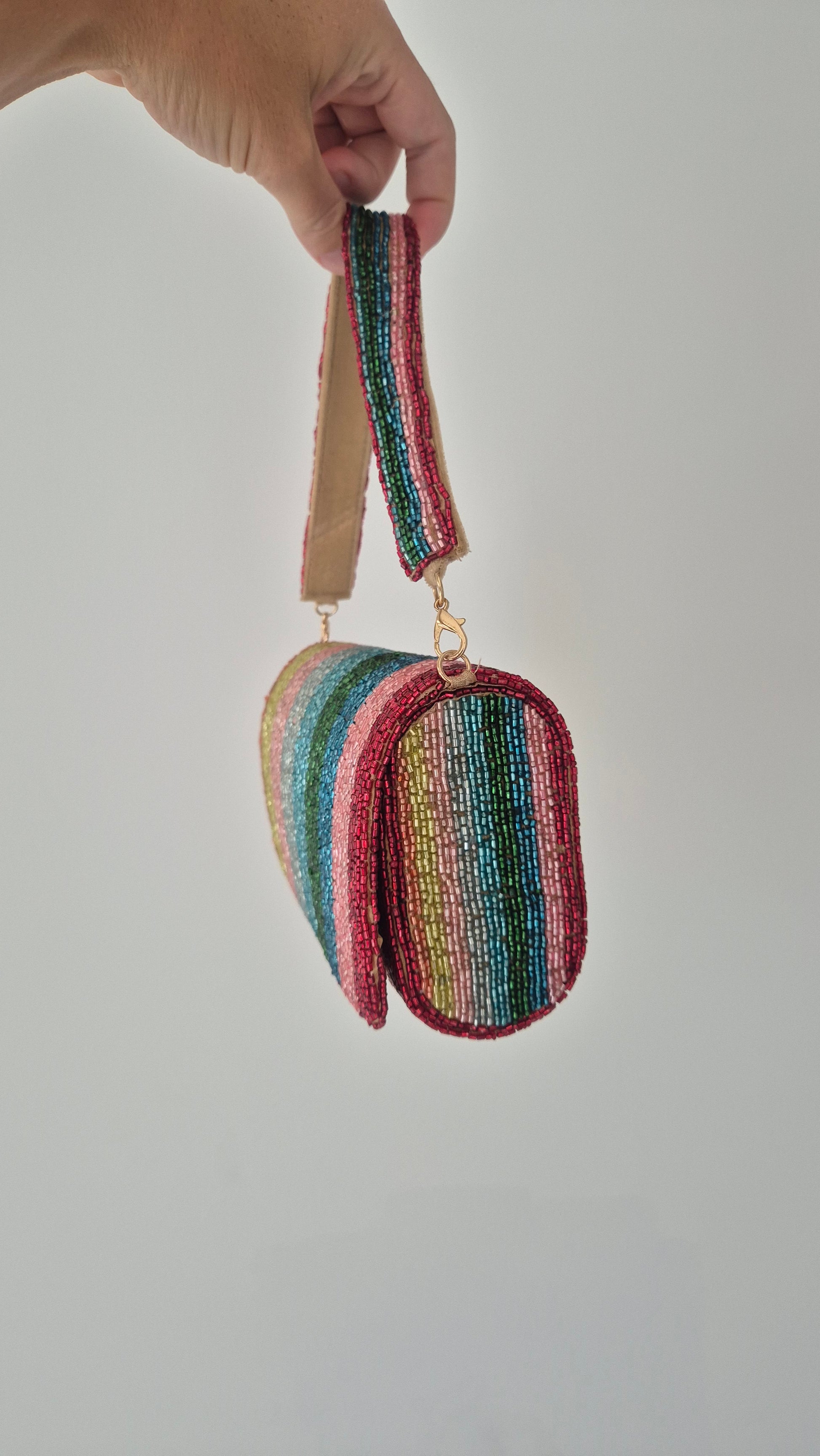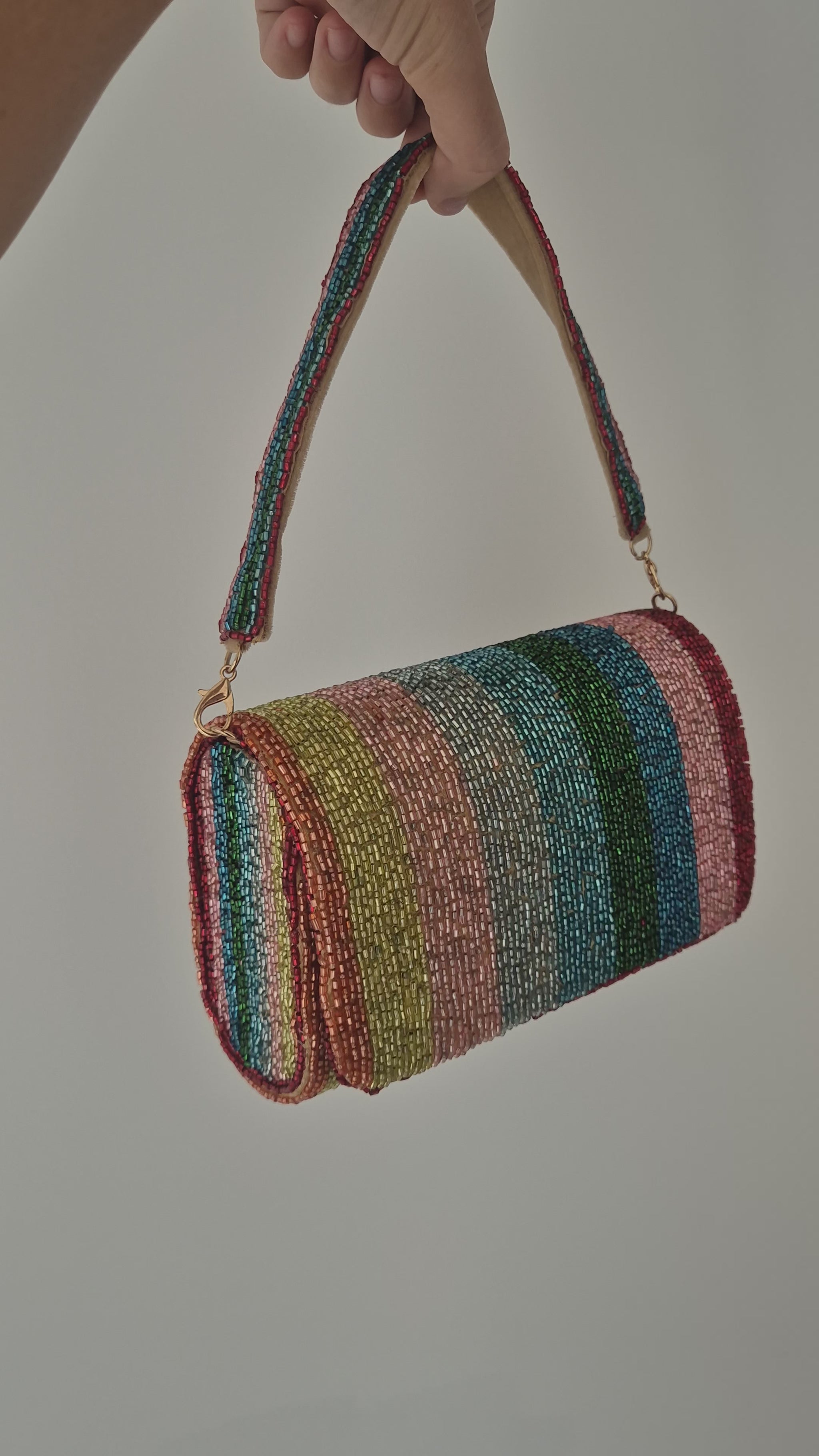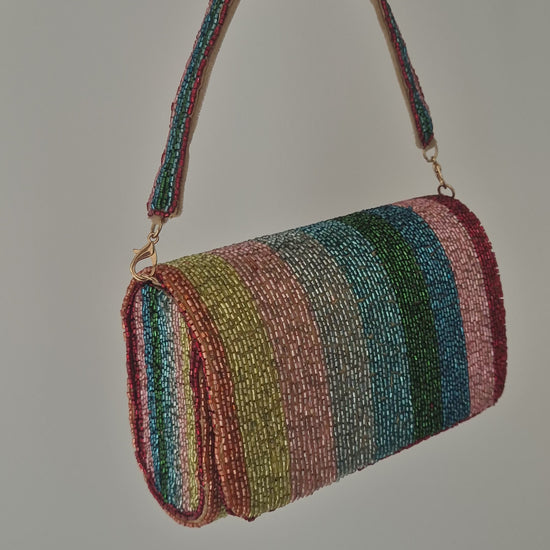 Handbag Stripe Embellished Beaded Bag Multi.
