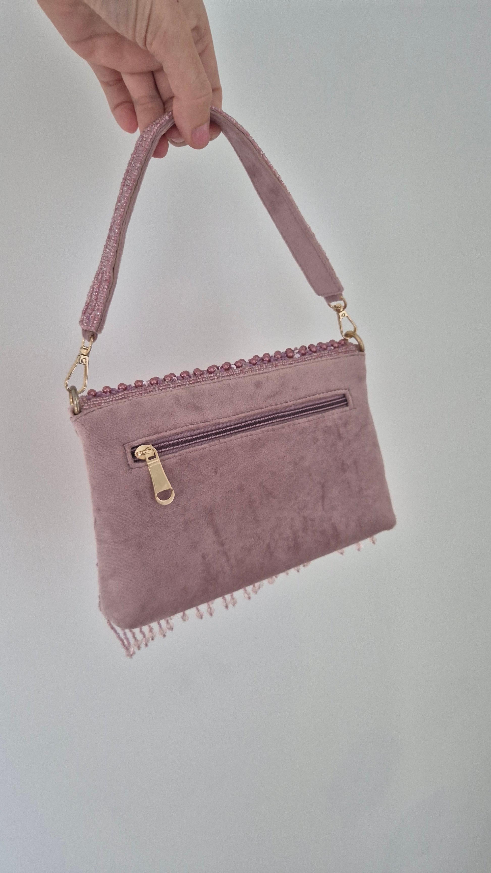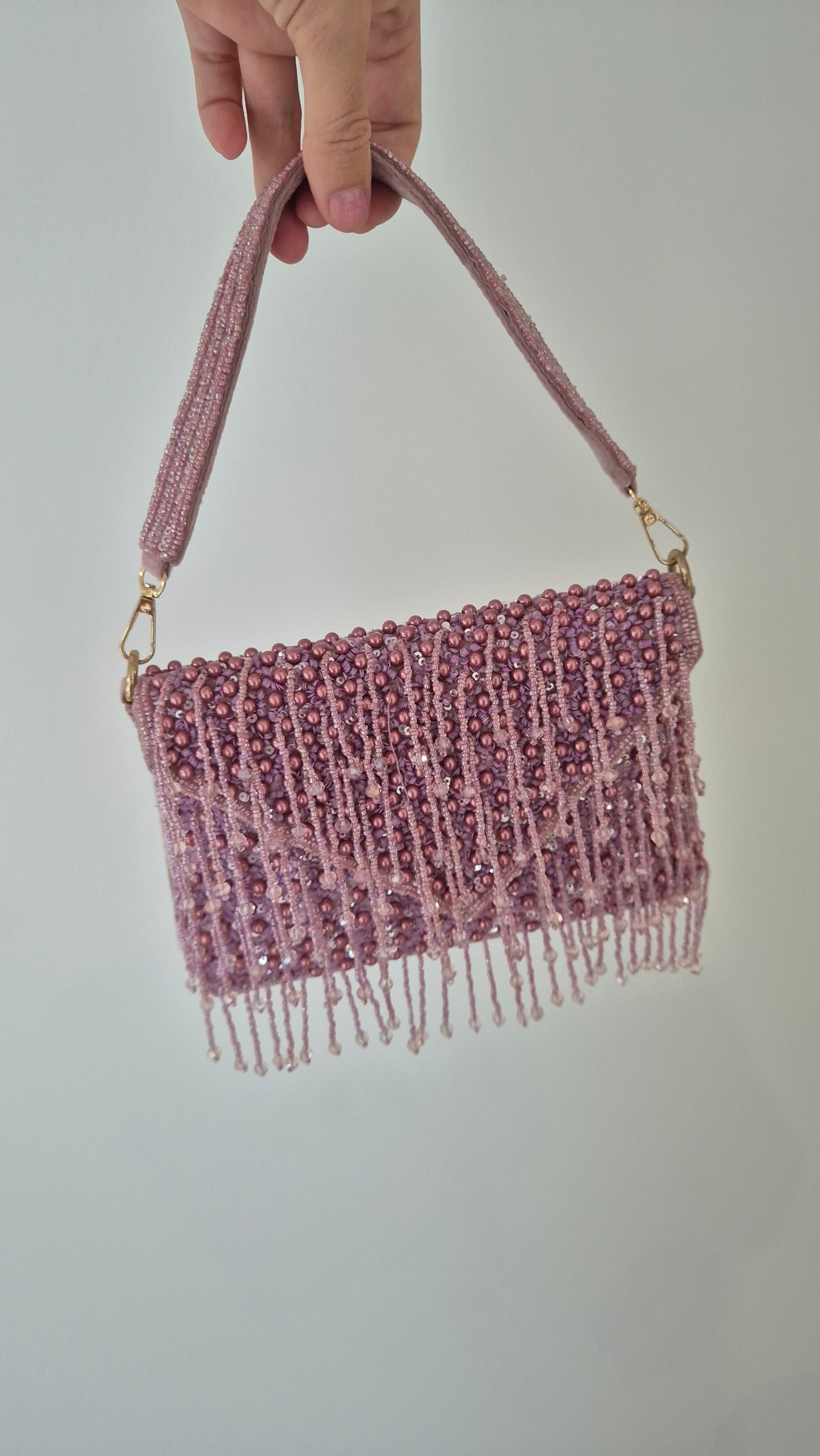 Handbag Beaded Tassel Drop Pearl Berry Pink Bag.