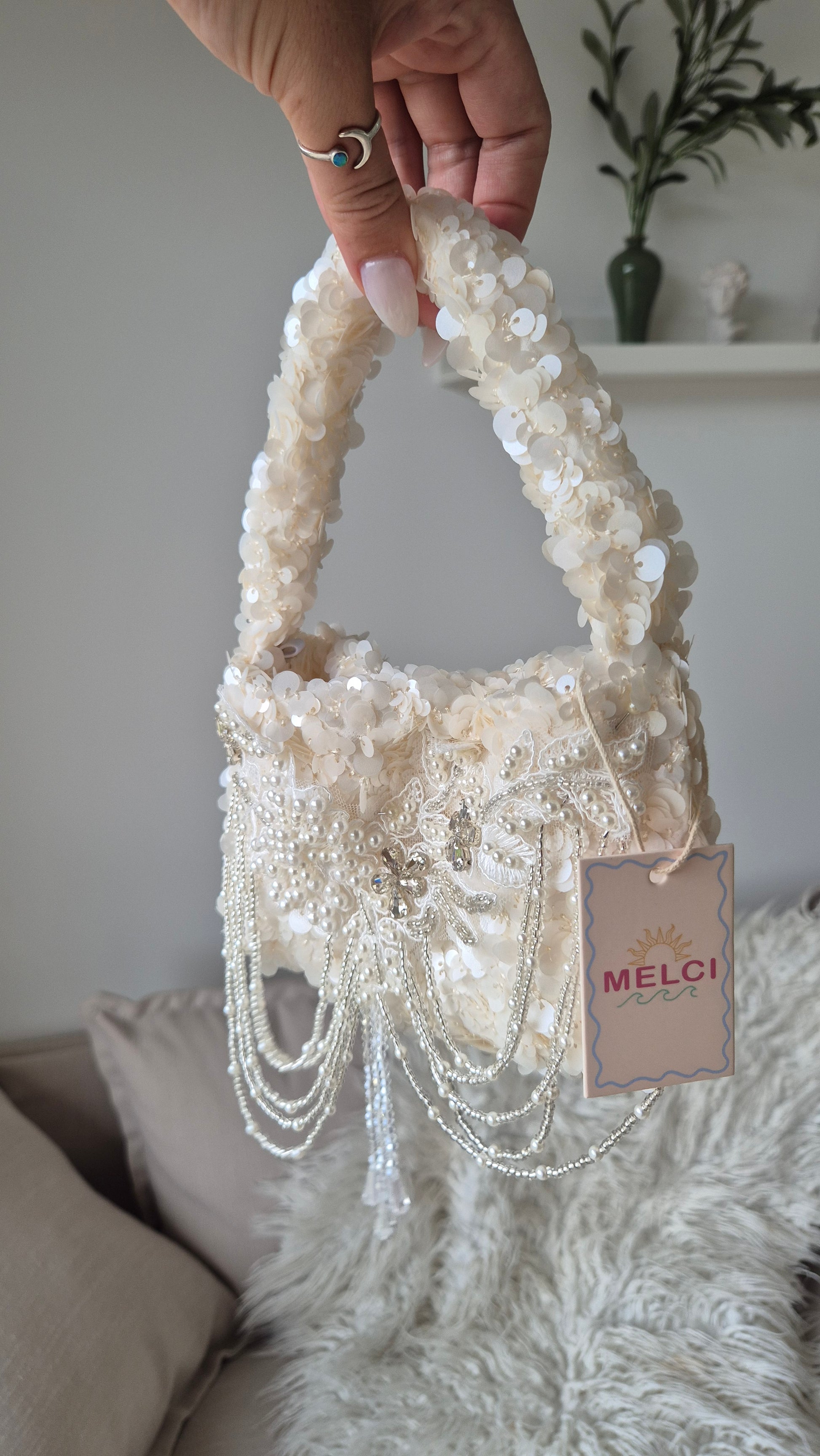 Diamonte tassel cute mini soft grab bag. It is mini size but big enough to fit a phone and still abit of extra room!